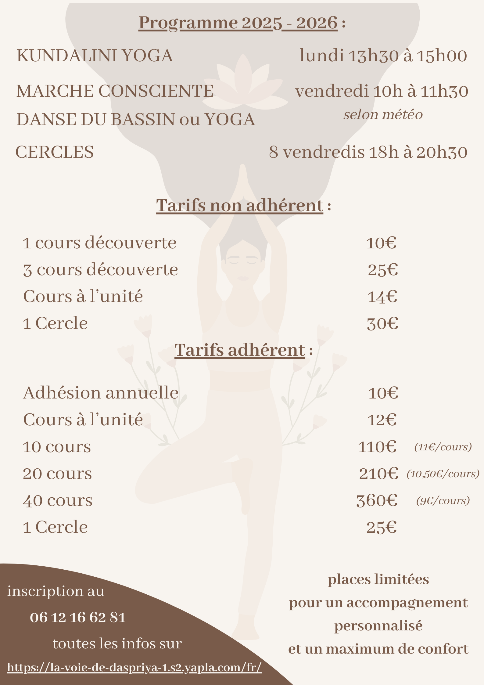 Kundalini Yoga ~ Marche consciente ~ Danse du bassin ~ Cercles de femmes